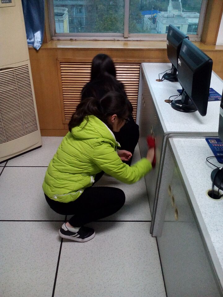 科学会堂6层的四个机房进行了认真仔细地打扫,清扫过程中,同学们分工明确,认真清理机房里残留下来的垃圾,虽然来自不同的班级,但同学们相互配合,相互帮助,积极参与到此次的清扫活动中。在我们一个多小时的努力下,教室里的面貌焕然一新,将为同学们提供一个干净、舒适的学习环境,充分践行了“两学一做”的精神。