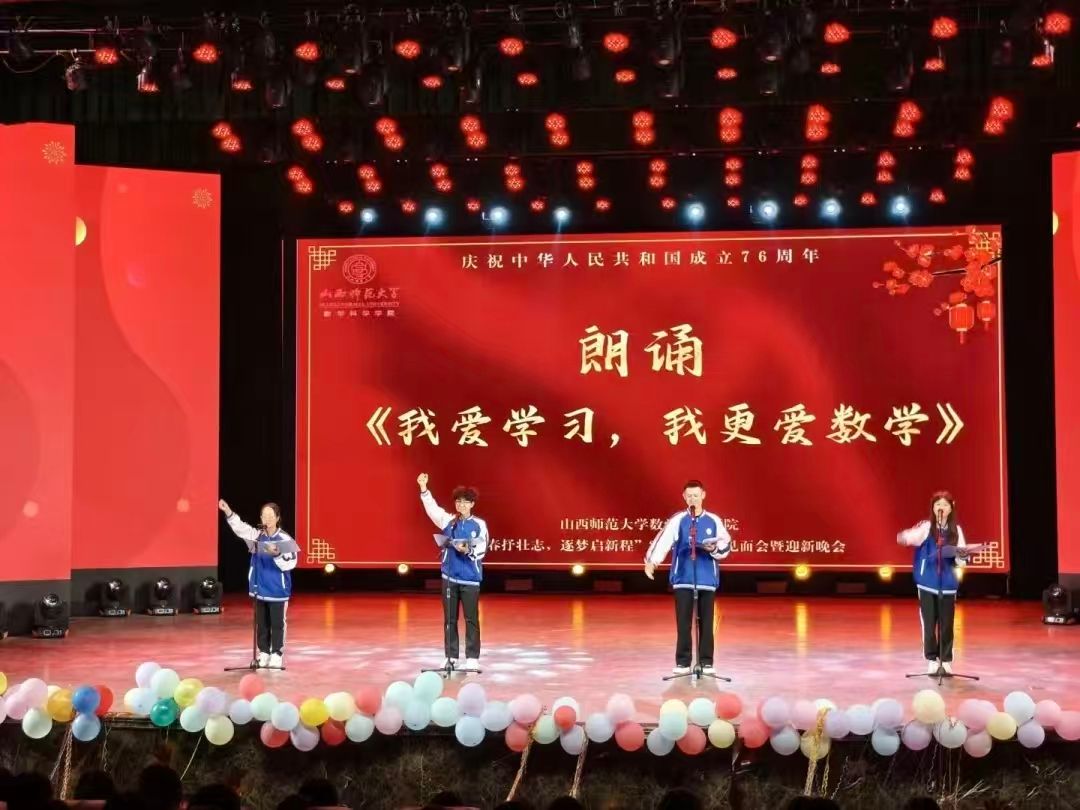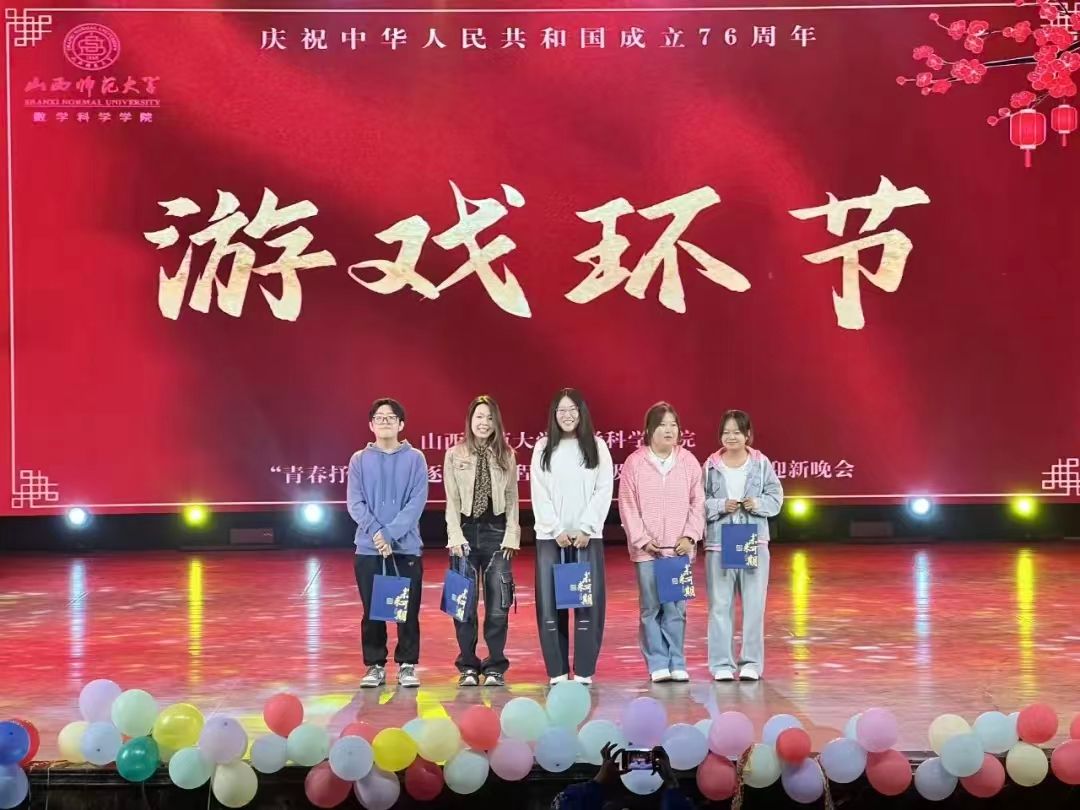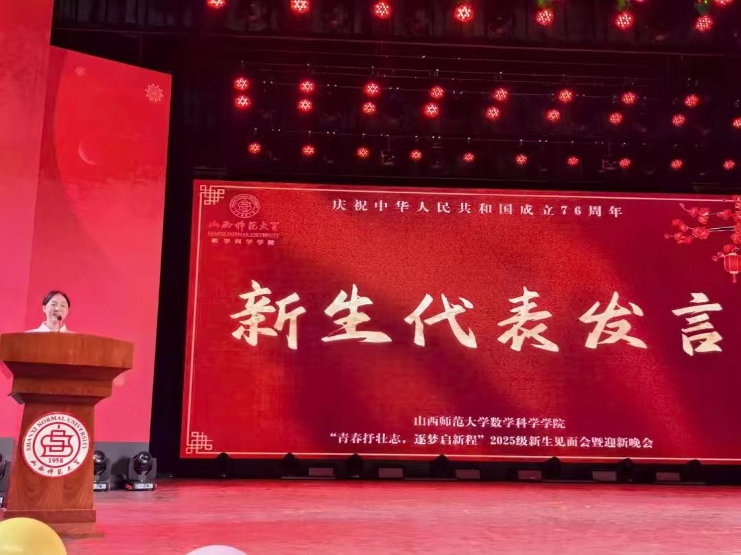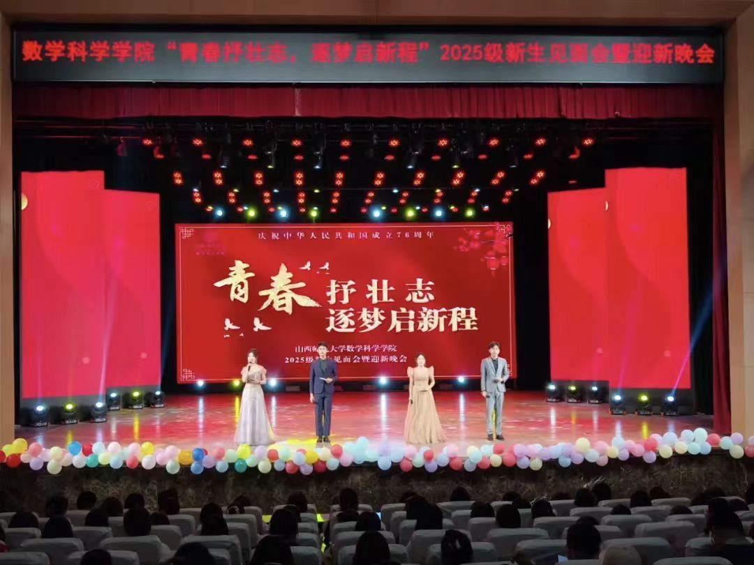 新生见面会环节圆满结束,随即迎来精彩的迎新晚会。晚会以动感十足的啦啦操《lalala》拉开序幕,表演者们整齐划一的动作与灿烂的笑容,瞬间点燃了现场的热烈气氛;研究生带来的合唱《国家》,他们以深情歌声传递家国情怀与青春赤诚;舞蹈《山河骁》用灵动的舞姿勾勒山河壮阔,展现中华儿女豪迈气魄;吉他弹唱串烧,以吉他声讲述青春里的追寻与成长;歌伴舞《日不落》用动感旋律与活力舞蹈,传递青春的热烈与朝气;田靖宇同学带来的独唱《无名的人》,用深情嗓音演绎平凡人的不凡力量,致敬了每一个在平凡路上坚定前行的“无名者”;朗诵《我爱学习,我更爱数学》,用幽默热血的表达展现学生对数学的热爱与探索;舞蹈《寄明月》以轻盈舞姿搭配古典韵律,呈现月光下的诗意美好;最后一首合唱《稻香》用熟悉的旋律勾起青春的回忆,传递温暖与治愈。此外,晚会还设置了中场游戏“听歌识曲”环节,通过趣味互动让同学们参与挑战赢取惊喜,现场观众热情高涨,反响十分热烈。