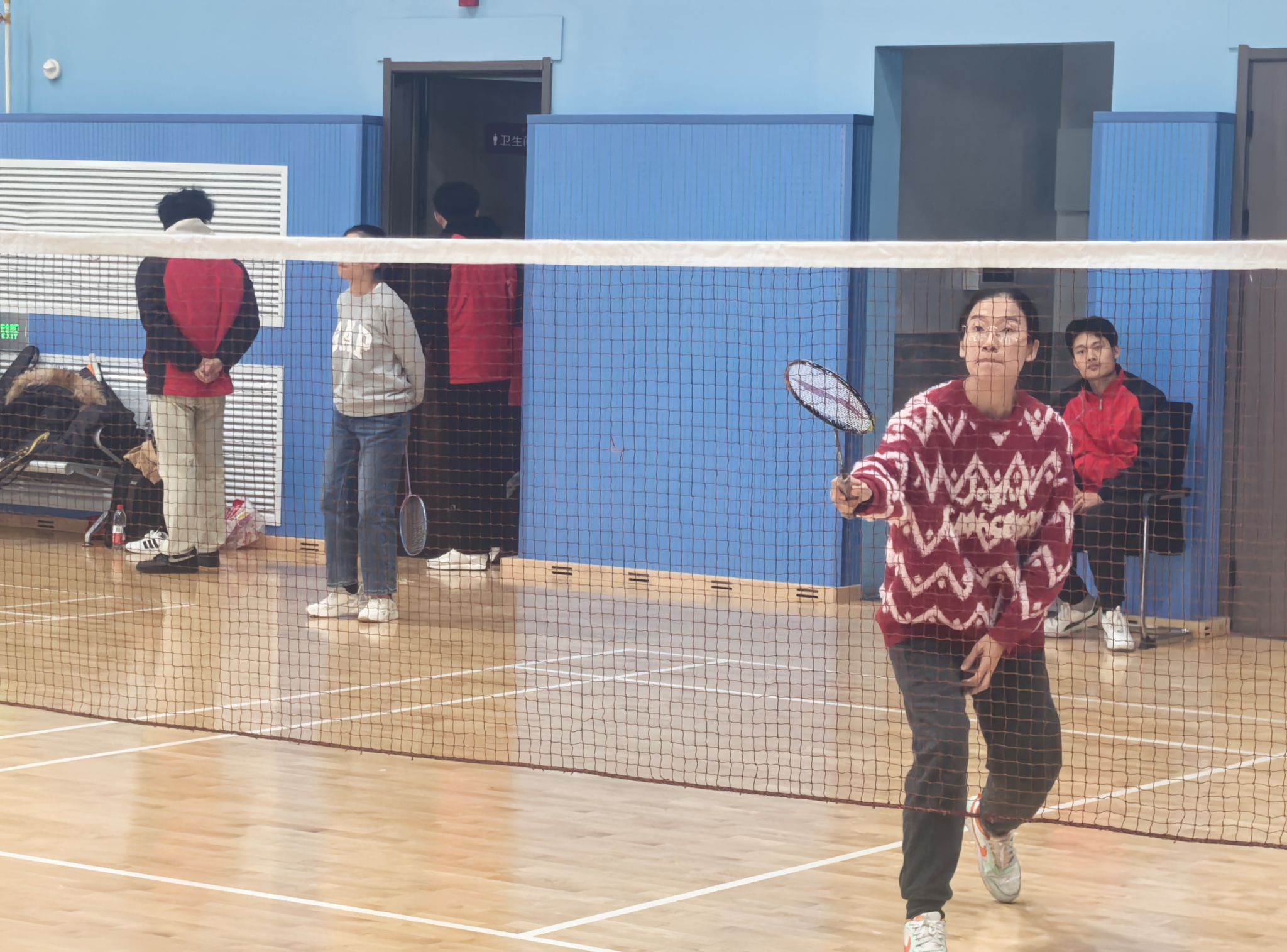 女子双打项目中,郝雅娴与卢建萍老师组合签运不佳,首轮即遭遇最终夺冠的强劲对手,但她们毫不退缩,在比赛中多次打出精妙的网前配合,面对对手的强攻顽强防守,虽最终止步首轮遗憾出局,但展现出顽强的拼搏精神,赢得了现场观众的敬意与掌声。
